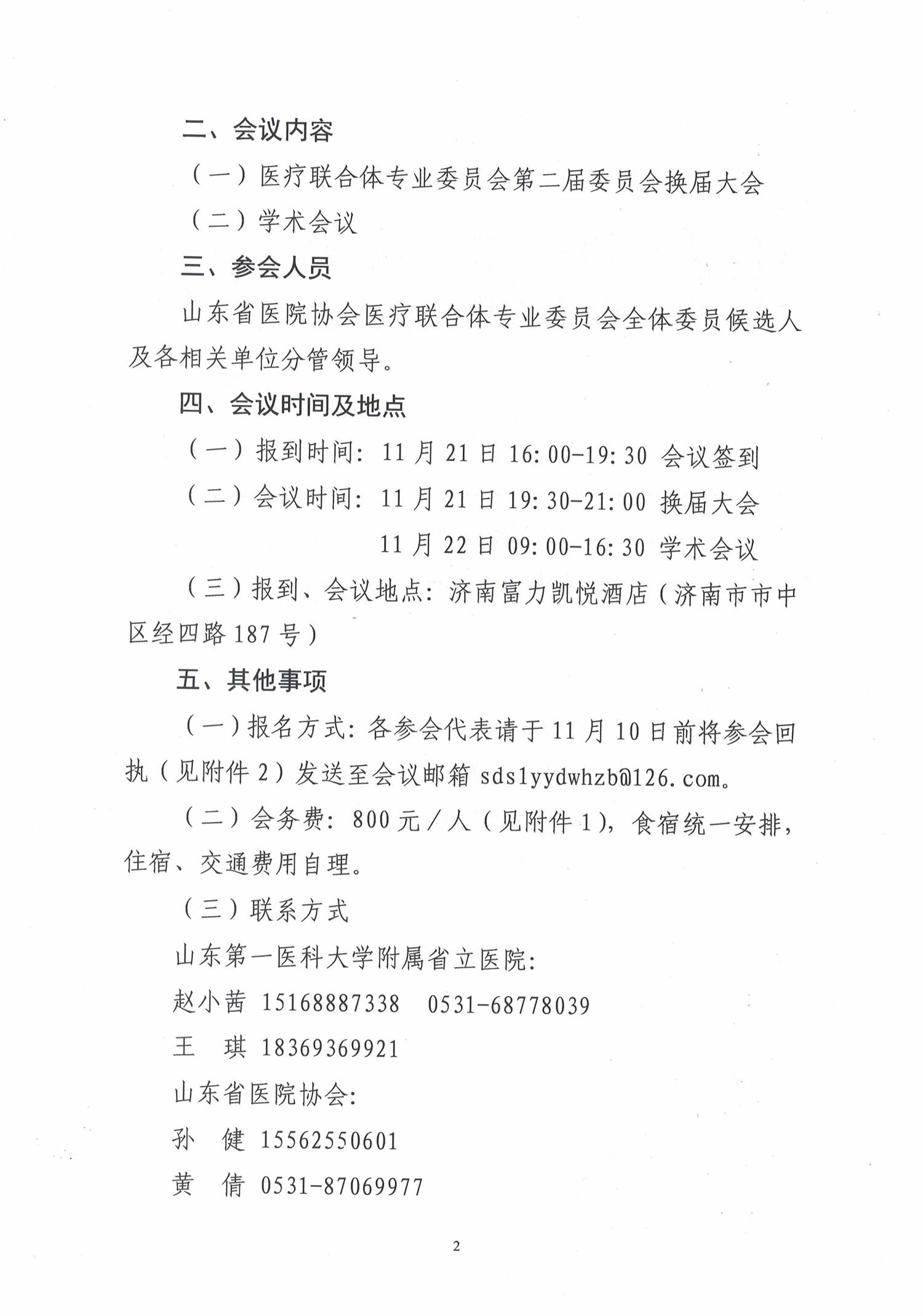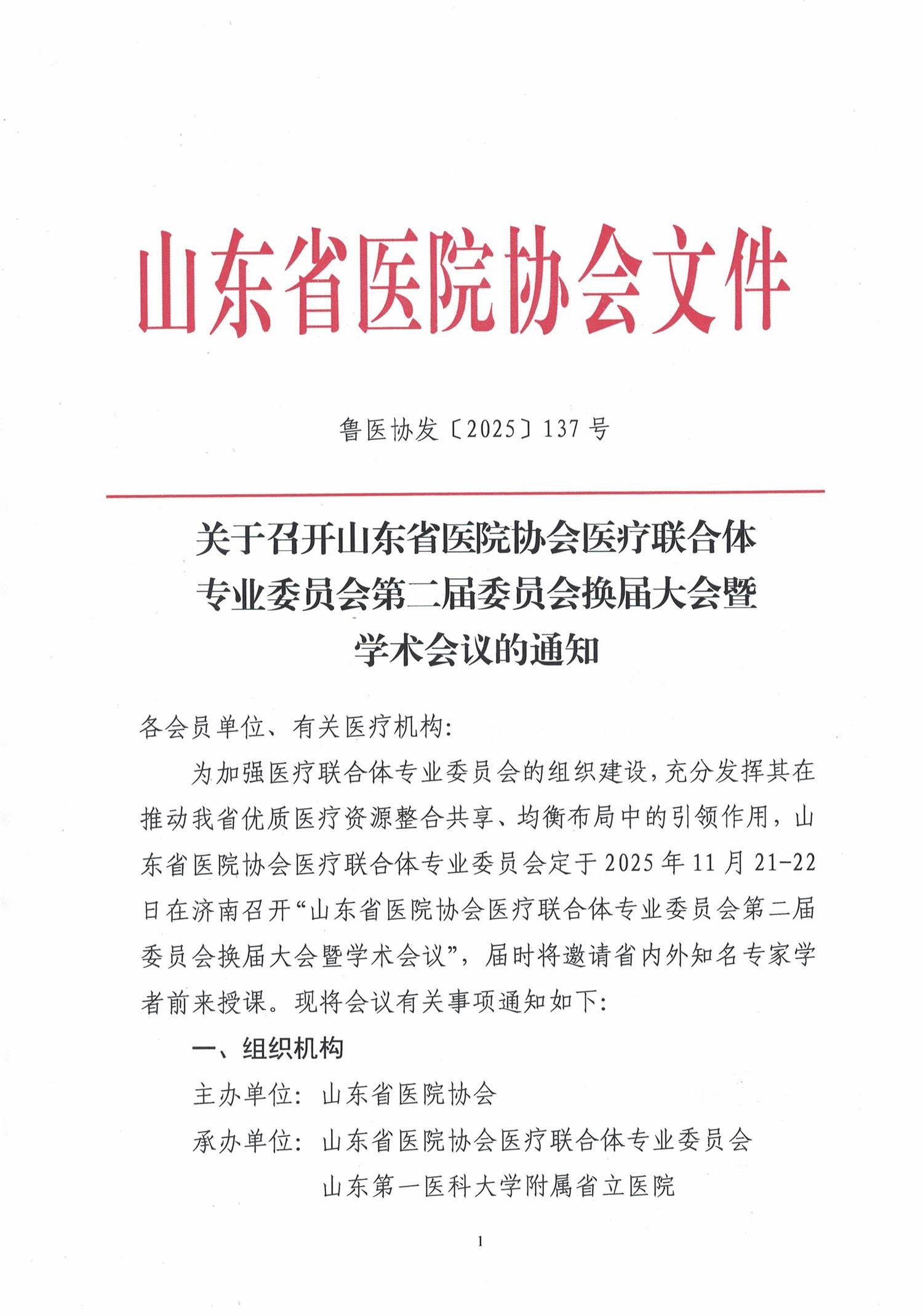 关于召开山东省医院协会医疗联合体专业委员会第二届委员会换届大会暨学术会议的通知